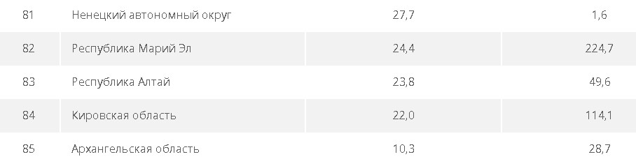 Самые печальные показатели - с отрывом в Архангельской области. Там в норматив укладывается лишь 10,3% региональных и местных дорог. В том числе в регионе нормативным требованиям отвечает 19% трасс регионального или межмуниципального значения и всего 4,9% - местного значения. Также в пятерку регионов-аутсайдеров с худшими дорогами вошли Кировская область, Республики Марий Эл и Алтай, а также Ненецкий автономный округ.