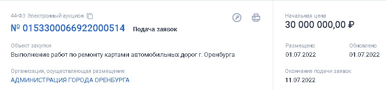Заявки принимаются до 11 июля, а итоги должны подвести (если найдутся желающие) на следующий день. Завершить ямочный ремонт на дорогах Оренбурга необходимо будет до 1 декабря.