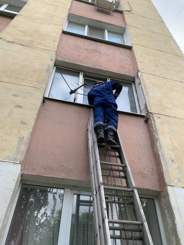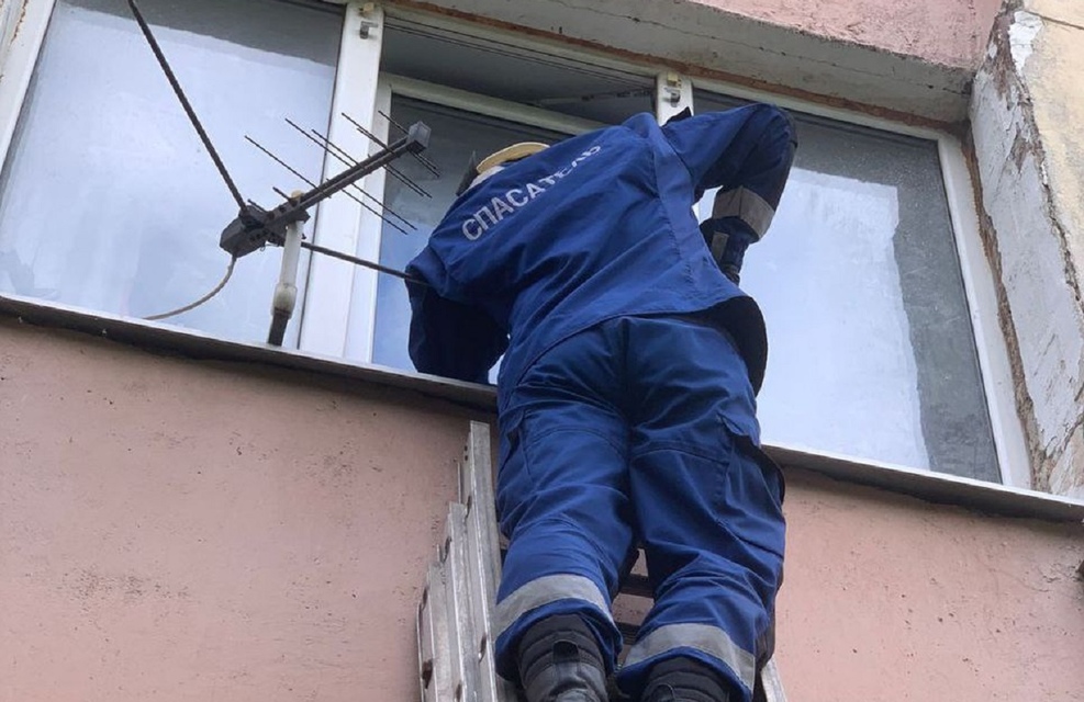 На вызов прибыли сотрудники аварийно-спасательной службы. Используя лестницу и специализированный инструмент, спасатели проникли в квартиру через окно.