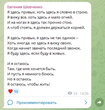 Вскоре в своём телеграм-канале чиновница разместила стихотворение: