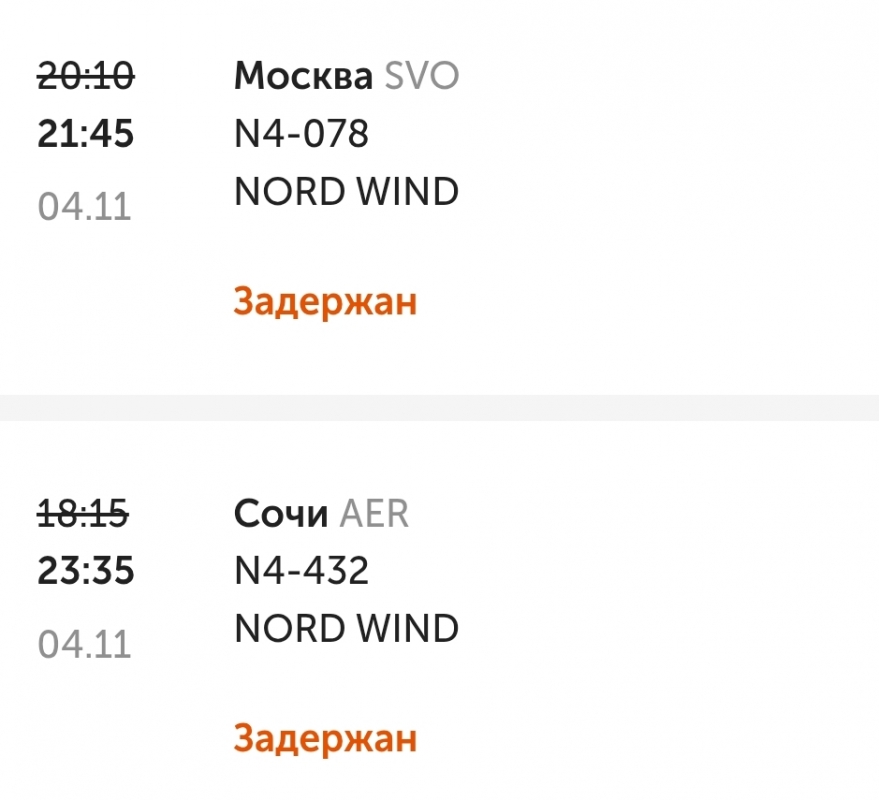 Рейс в Москву также сдвинулся по времени: новый вылет назначен на 21:45 вместо 20:10.
