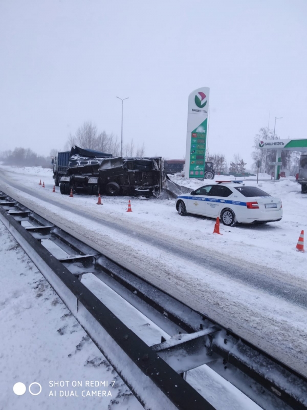 По предварительной версии, КамАЗ двигался из Оренбурга в сторону Переволоцкогого района. Из-за сложных погодных условий занесло прицеп большегруза, который в последствии сложился, а практически весь груз – семена подсолнечника, оказался на проезжей части. Из-за перекрытой КамАЗом дороги следом столкнулись еще двадцать автомобилей.