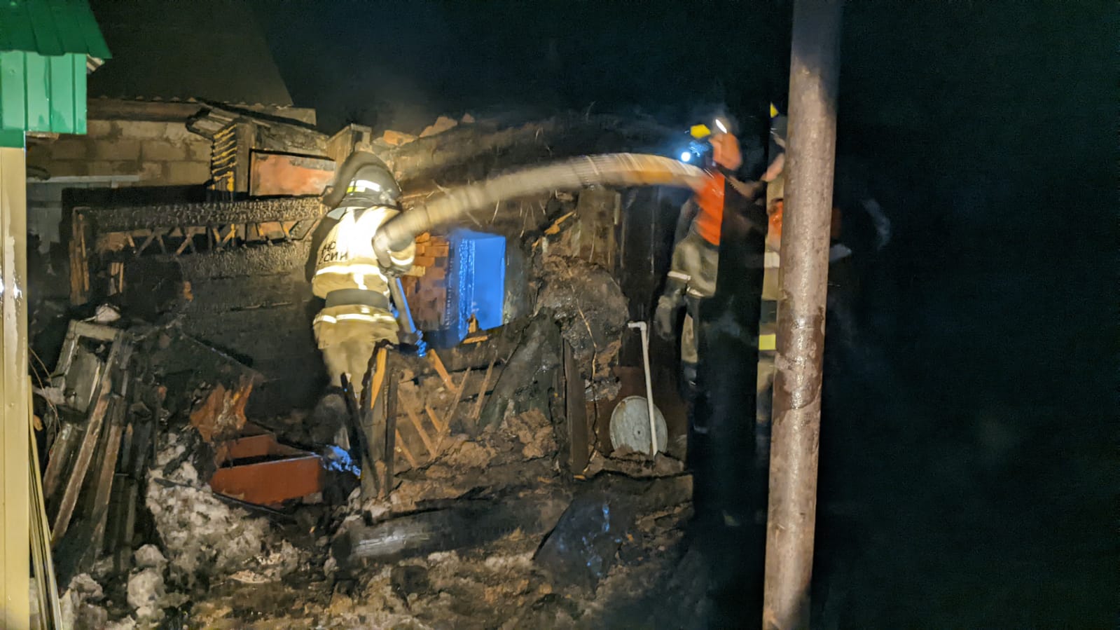 В ходе боевых действий по тушению была исключена возможность перехода огня на соседние строения. В 00:27 пожар полностью ликвидирован. Огонь повредил стены, перекрытие, кровлю и вещи, находившиеся внутри. Всего к ликвидации привлечено две единицы техники и 7 пожарных. Предположительная причина - нарушение техники безопасности при использовании печного оборудования.