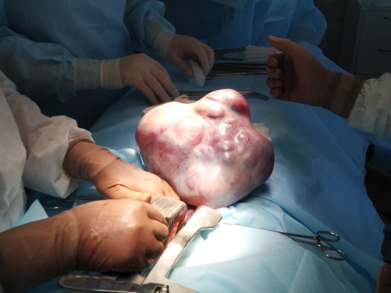 Девочке назначили операцию, но её пришлось отложить из-за вирусной инфекции. За это время опухоль увеличилась в два раза и достигла веса в 3,2 (!) килограмма. Она имела потенциальный злокачественный компонент. К счастью, хирурги онкодиспансера сумели спасти жизнь и здоровье девочки: