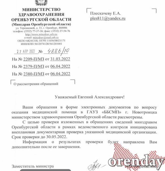 Например, проверка от регионального Минздрава уже нагрянула в ГАУЗ «ББСМП» г. Новотроицка.