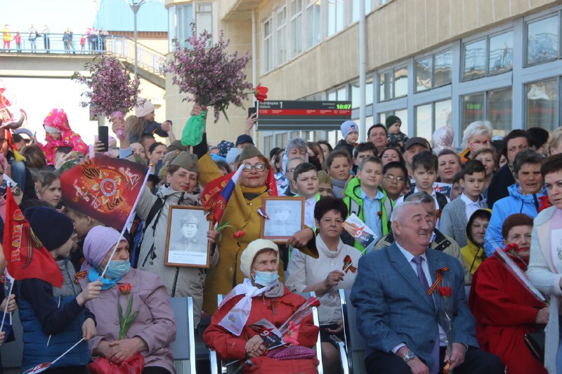 Бузулучане целыми семьями пришли встретить поезд, поприветствовать ветеранов и тружеников тыла. Для всех гостей творческие коллективы города подготовили известные музыкальные произведения военных лет, а вконце все присутствующие хором исполнили песню «День Победы».
