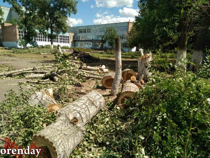 В Оренбурге оголилась территория школы № 79. Красивые и добротные деревья, дававшие тень в летний зной и обогащавшие воздух кислородом, пущены под топор. Зелеными насаждениями, которые многие десятки лет благополучно радовали глаз, пожертвовали ради спортивной площадки.