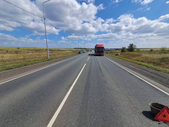 По предварительной информации от сотрудников госавтоинспекции Оренбуржья на трассе М-5 «Урал» легковой автомобиль Lifan, двигающийся со стороны Орска в Оренбург, получил удар в «спину» от двигающегося за ним грузовика Scania под управлением 59-летнего водителя. Вероятнее всего, водитель грузовика не выдержал безопасную дистанцию, что и привело к съезду легковушки в кювет. Пострадала 70-летняя женщина, пассажир автомобиля Lifan. Она была госпитализирована в больницу.