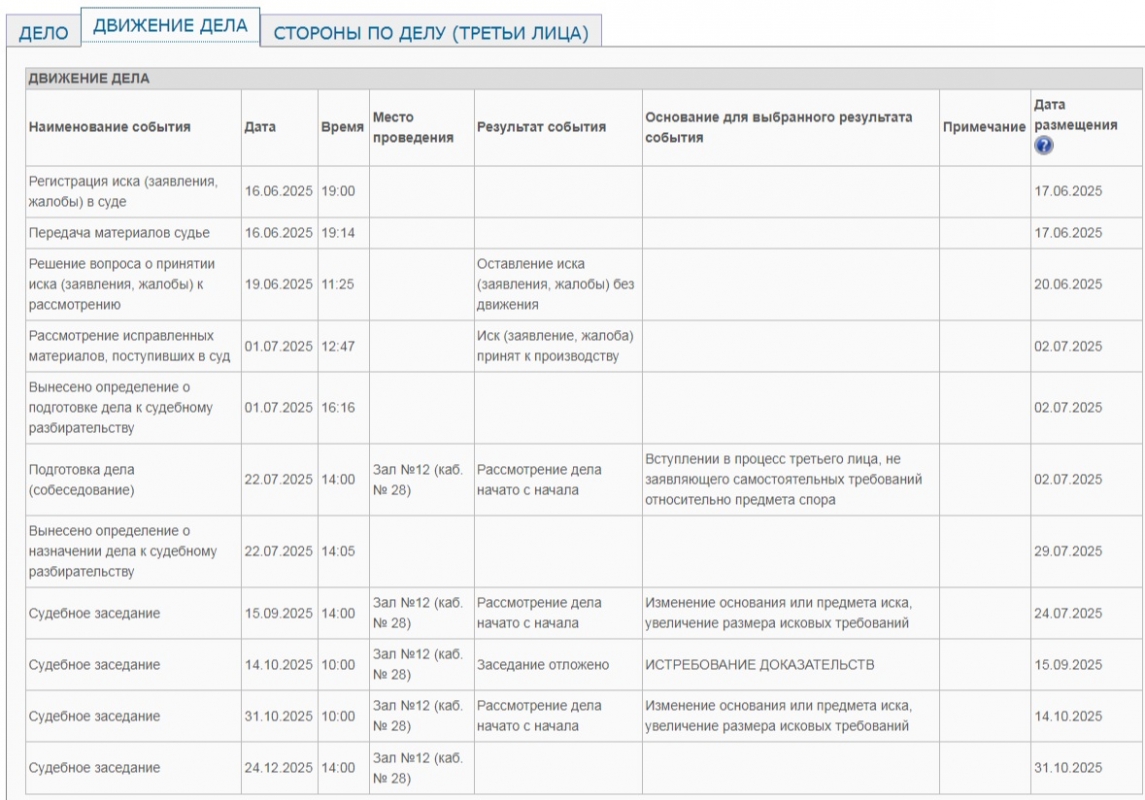 Но на третьем заседании вновь пришлось рассмотрение вопроса перенести на 24 декабря 2025 года, поскольку ответчику не были отправлены уточненные исковые требования.