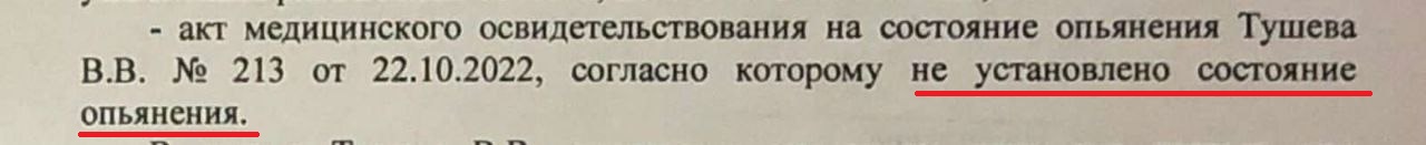Тушев снял побои - у него выявили многочисленные повреждения головы, ребер, ног и рук – ушибы, синяки и кровоподтеки. 25 октября с разрешения следователя мужчина, наконец, вернулся домой в Оренбург. Сходил в поликлинику уже по месту прописки, получал лечение. А в конце ноября получил письмо от СУ СК РФ по Свердловской области: по результатам проверки в отношении сотрудников полиции линейного отдела МВД Росии по аэропорту «Кольцово» возбуждено уголовное дело по статье п. «а». ч. 3 ст. 286 УК РФ – «Превышение должностных полномочий с применением насилия или угрозой его применения».