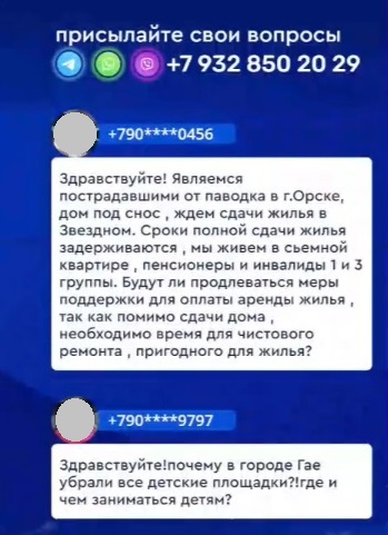 Начал "прямую линию" Денис Паслер с отчета по выплатам по паводку, при этом предостерег земляков, чтобы не попадались на удочку мошенников, попросил оренбуржцев быть политически грамотными людьми и не вестись на провокации. Если кто-то собирает деньги и рассказывает, что поедет в Москву и все решит, не стоит верить. Все вопросы решаются на территории региона.