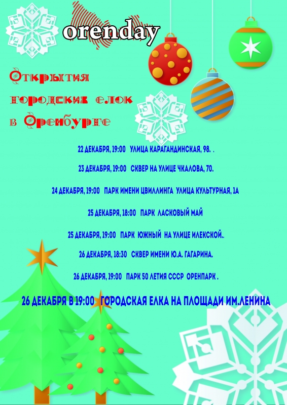 26 декабря, 19:00 – парк 50-летия СССР (Оренпарк).