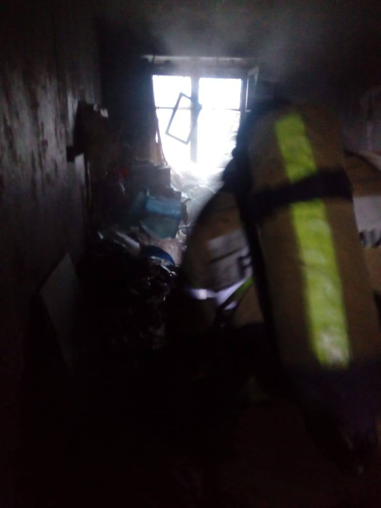 В прихожей была найдена женщина. Её незамедлительно вывели на свежий воздух. В спальне обнаружен очаг на площади 3 квадратных метра.