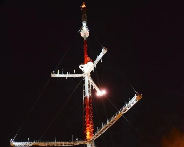 Телевизионная мачта в Оренбурге в переулке Телевизионный, которая зажигается каждый вечер еще с прошлого года, в воскресенье озарится праздничной подсветкой по случаю Дня радио. Это будет своеобразным поздравлением работников связи с профессиональным праздником.
