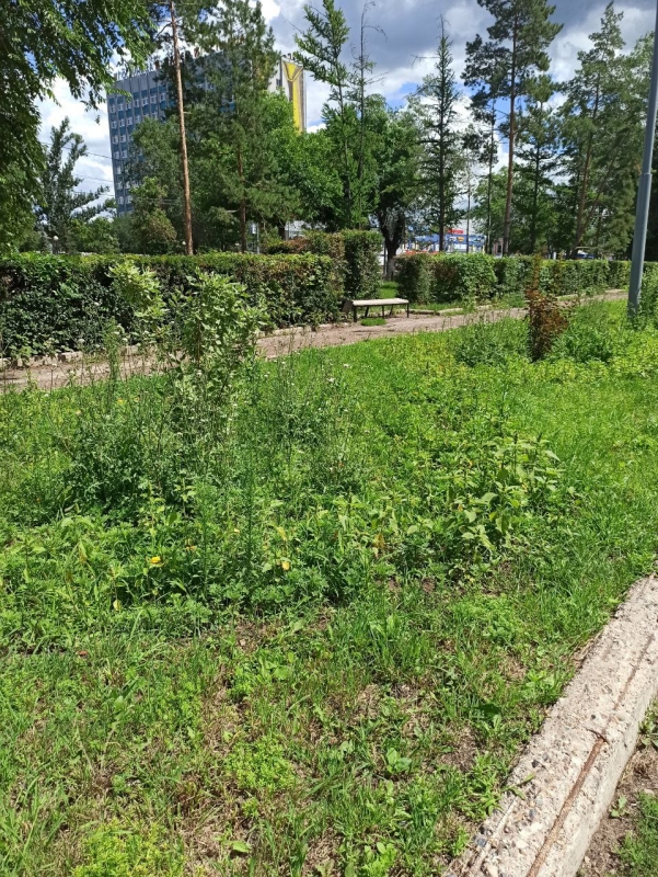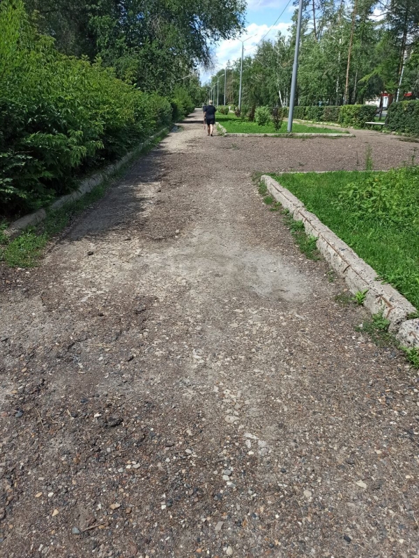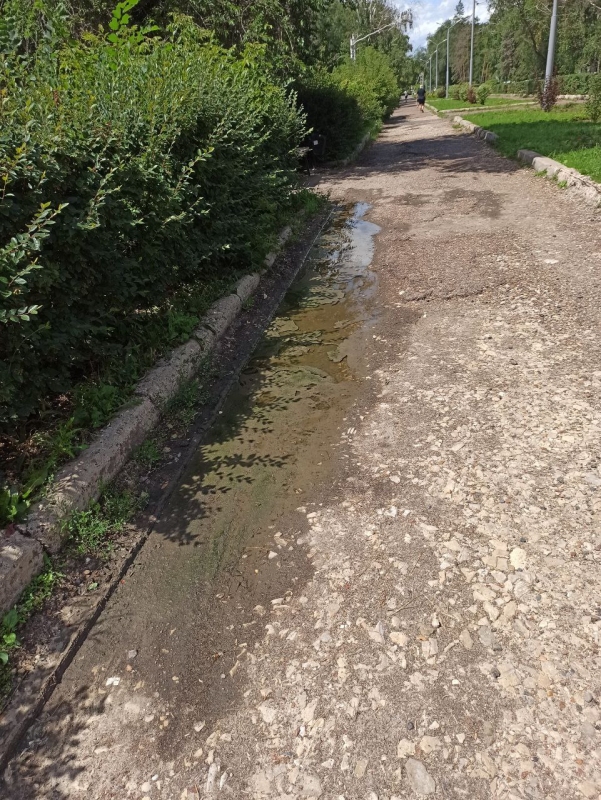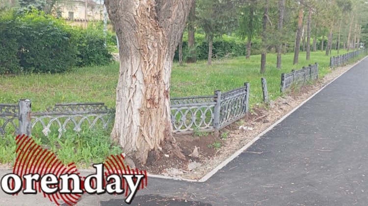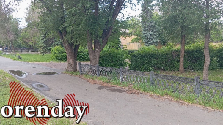 Но благоустройством сквера никто не занимается. Асфальт на дорожках рассыпался. Прогуливаться здесь некомфортно. А после дождя появляются большие лужи. Даже бордюрный камень, который так любят менять в Оренбурге, раскрошился почти наполовину.