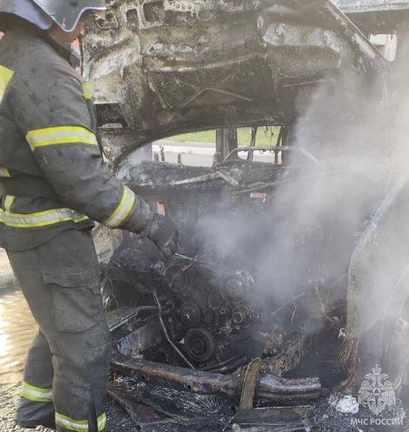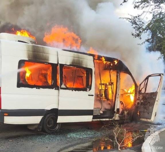 Во время движения загорелся общественный транспорт. Незадолго до возгорания водитель высадил всех пассажиров на остановке, словно предчувствуя беду. Успел он и сам покинуть транспорт.