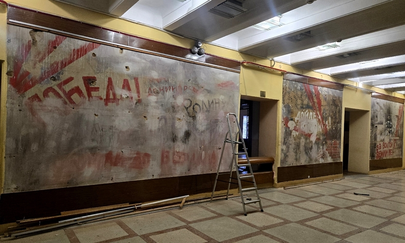 Ремонт только начался и рабочие принялись за демонтаж конструкций, в том числе и зеркал в фойе. За ними были обнаружены интересные надписи, при близком рассмотрении оказалось, что это копия надписей, нанесенных на стены Рейстага в 1945 году. Откуда это взялось, и для чего было нанесено – никому неизвестно. Театр заработал в новом здании на улице Терешковой 1963 году, поэтому ко временам ВОВ они никак относиться не могут. В социальных сетях оренбуржцы выдвигают разные версии, в том числе и о том, что это могло бы быть декорацией либо украшением фойе к юбилею празднования Победы.