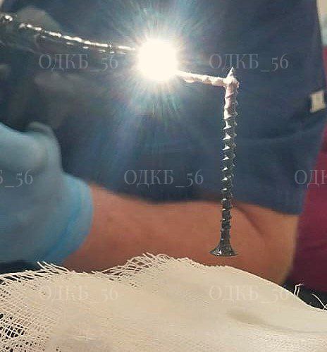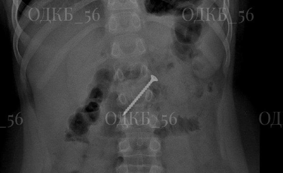 Родители заподозрили неладное и обратились к медикам. Рентген показал в желудке инородное тело. Ребёнка доставили в ОДКБ, где команда специалистов под общим наркозом выполнила эндоскопию. Саморез уже мигрировал в двенадцатиперстную кишку, создавая риск кишечной непроходимости и перфорации.