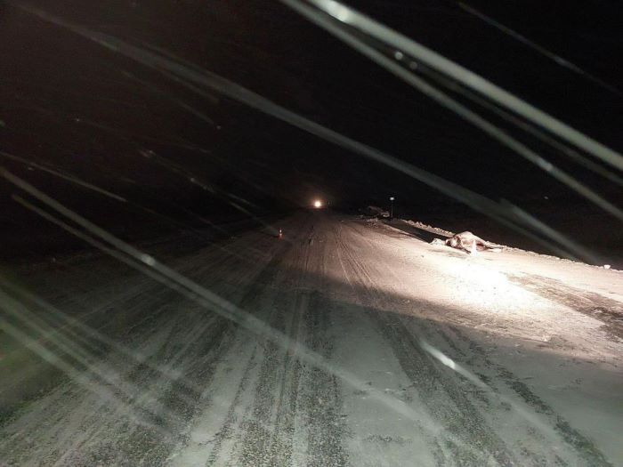 Неудачно закончилась для молодых людей поездка ранним утром в Рождественский Сочельник, так как на дороге в полумраке они не сразу заметили животное. Легковушка значительно пострадала, как и человек в ее салоне.
