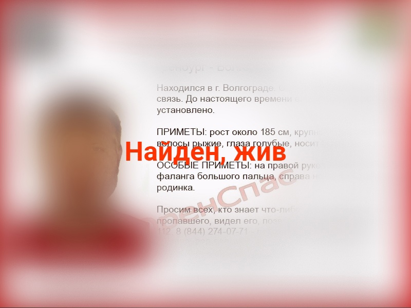 Напомним, как сообщал Orenday, 42-летний мужчина из Оренбурга находился в Волгограде. С 1 ноября 2022 года он перестал выходить на связь с близкими. С тех пор он был объявлен в розыск.