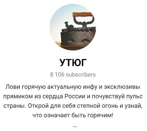 TГ-канал «Утюг» появился 3 марта 2022 года. Первой публикацией был материал о просроченной колбасе по сообщению Управления Россельхознадзора по Оренбургской области. Создатели канала были неизвестны, стиль авторских постов порой менялся. «Утюг» отличался политической повесткой, часто размещал провокационную информацию о чиновниках, бизнесменах, силовых структурах.