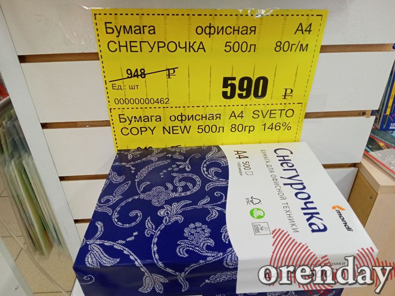 В оренбургских магазинах канцтоваров и товаров для дома пока такая бумага есть далеко не везде. Правда, зато цена на «Снегурочку» и «Svetocopy» стала ниже. Например, 500 листов «Снегурочки» формата А4 класса С стоит 590 рублей.