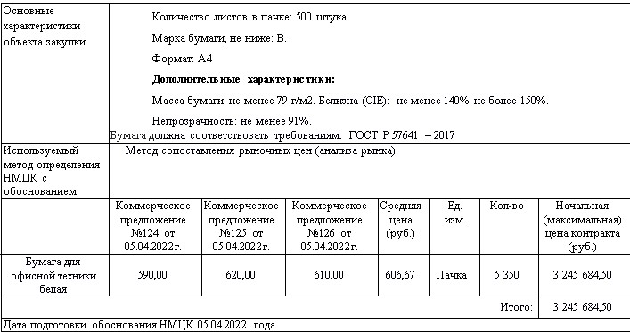 В обосновании контракта указано, что рассмотрено четыре предложения, цены, предложенные поставщиками, варьируются от 590 рублей до 620 рублей.