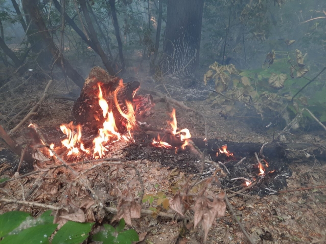 На месте работают пожарные расчёты. Из-за сухой погоды пламя быстро распространилось и охватило большую часть городского парка.