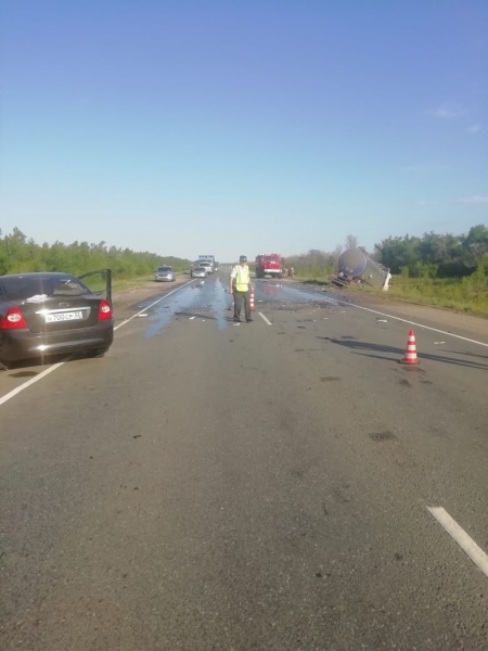 По имеющейся информации, столкнулись легковой автомобиль Форд и автоцистерна. Как уточнили в УМВД России по Оренбургской области, 53-летний водитель "Форда Фокуса" ехал в направлении Оренбурга (автомобиль ехал из Брянска). Он выехал на полосу проезжей части, предназначенную для встречного движения (выезд разрешен) и допустил столкновение с движущимся во встречном направлении прямо автомобилем "ДАФ".