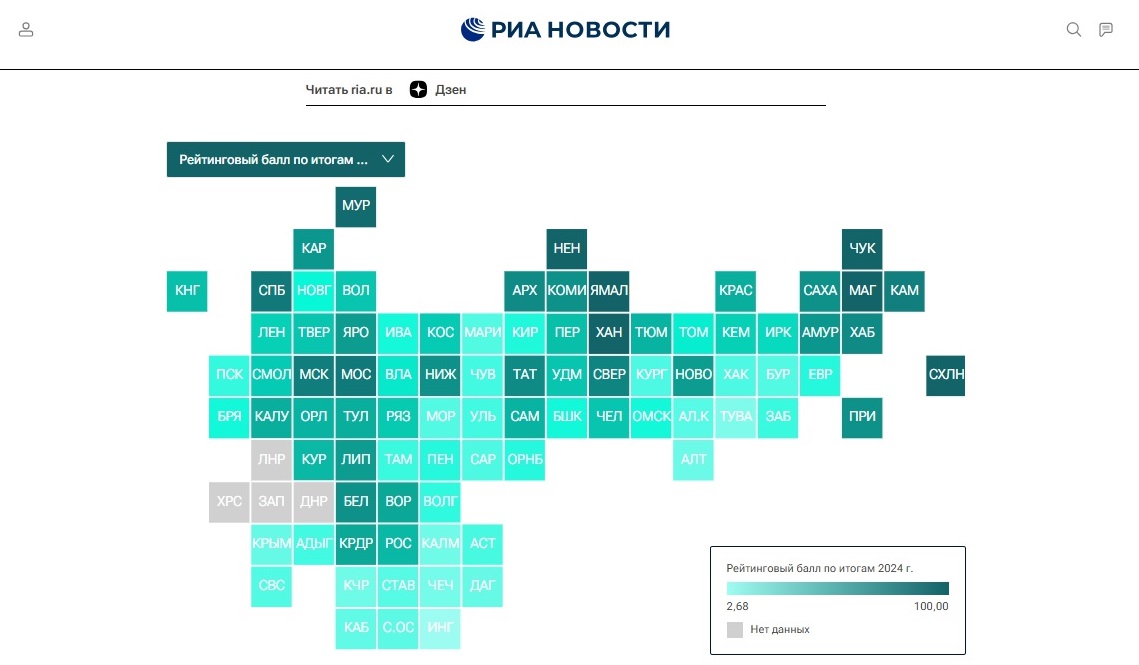 Замыкают рейтинг Республики Алтай, Калмыкия, Карачаево-Черкесская Республика, Чеченская Республика, Республики Тыва и Ингушетия.