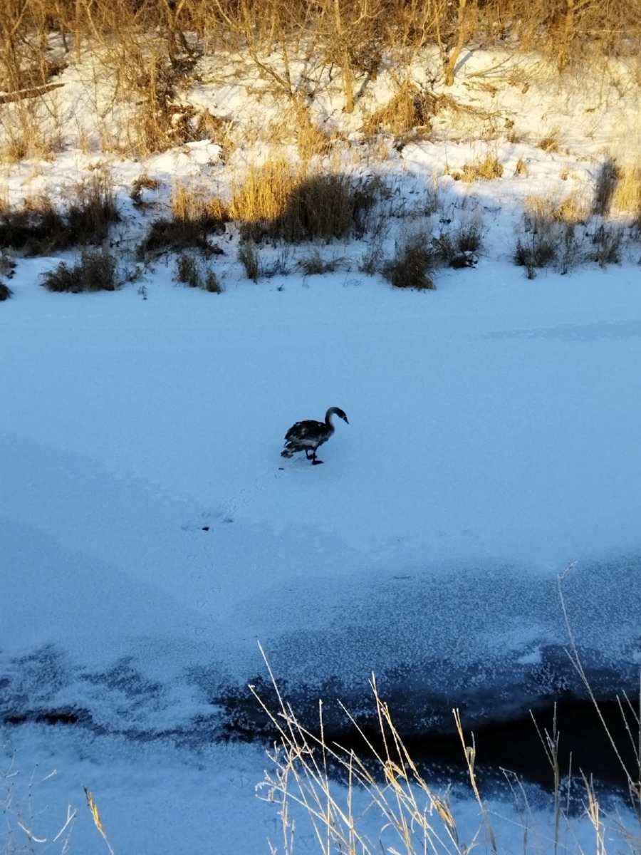 Жители Абдулино увидели на замерзающей и покрытой снегом реке дикую птицу. Это лебедь, который по словам очевидцев не может летать. Может быть поэтому, а может быть, по каким-то другим причинам, птица не улетела на зимовку.