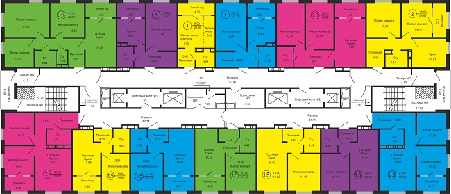 На выбор покупателей предоставлено большое количество вариантов квартир: достаточно лишь определиться с необходимым числом комнат и их площадью.