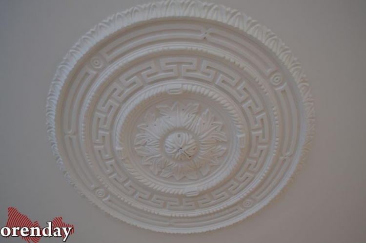 Реставраторы восстановили исторические розетки на потолке под люстры, продолжают тонкую, кропотливую и трудоемкую работу над печкой, требующую невероятного мастерства и внимательности.