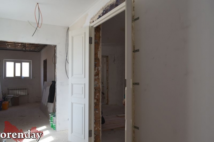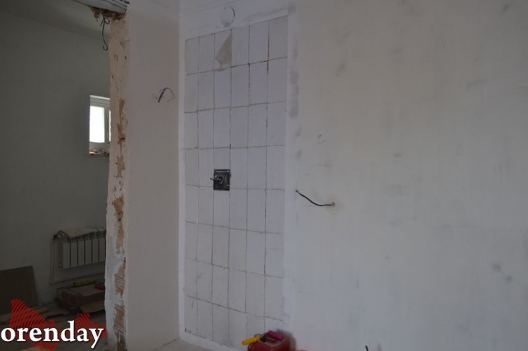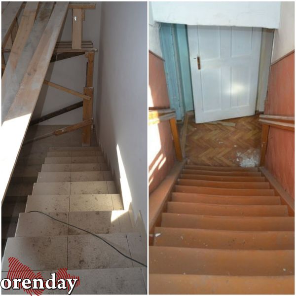 На месте уже установлена часть сантехники, опасную крутую деревянную лестницу заменили на бетонную и покрыли ее плиткой, вставили новые окна и двери, во дворе уложена тротуарная плитка.