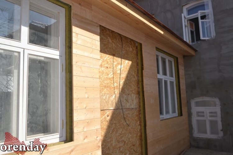 До открытия музея остались считанные недели, а фронт завершающих работ - огромный. Строители укладывают новый пол, шпаклюют стены, работают над внешним убранством. Фасад части дома теперь закрывает деревянная облицовка.