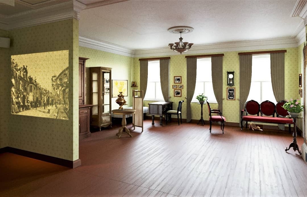 Музей будет состоять из комплекса зданий: это сам дом площадью 276,6 квадратных метров, мастерская площадью 54,5 квадратов, каретник площадью 78,6 квадратных метров. Здесь воссоздают исторические интерьеры, которые включают в себя подлинные предметы семьи и экспонаты военной эпохи.
