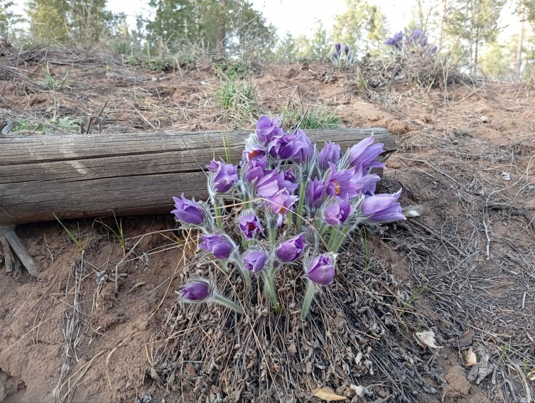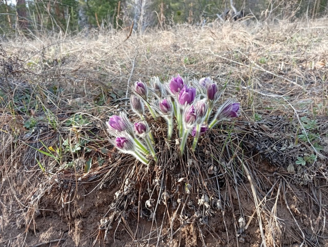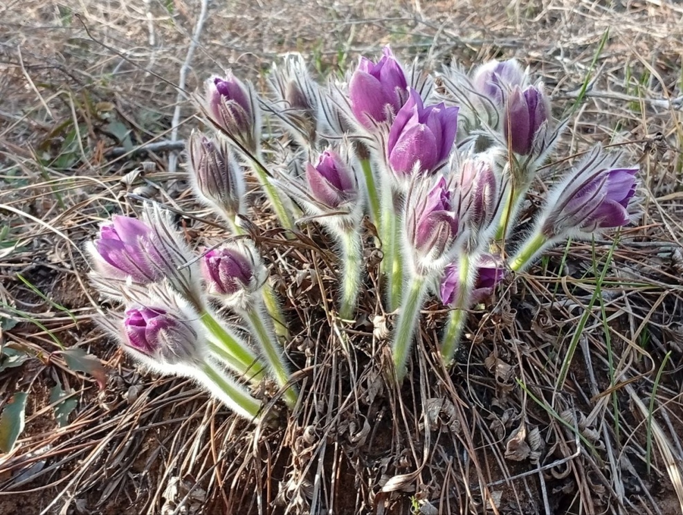 На солнечных полянах национального парка расцвели прострелы, причём, почти на две недели раньше привычного срока. Пушистые тюльпаны совсем маленькие, но заметные из-за своего нежно-фиолетового цвета.