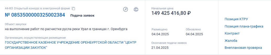 Максимальная стоимость тендера 149 425 416,80 рублей. Заявки от потенциальных подрядчиков принимаются до 21 апреля текущего года.
