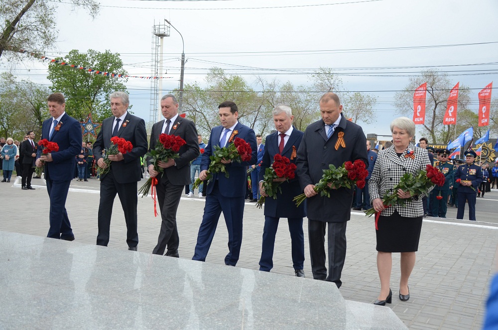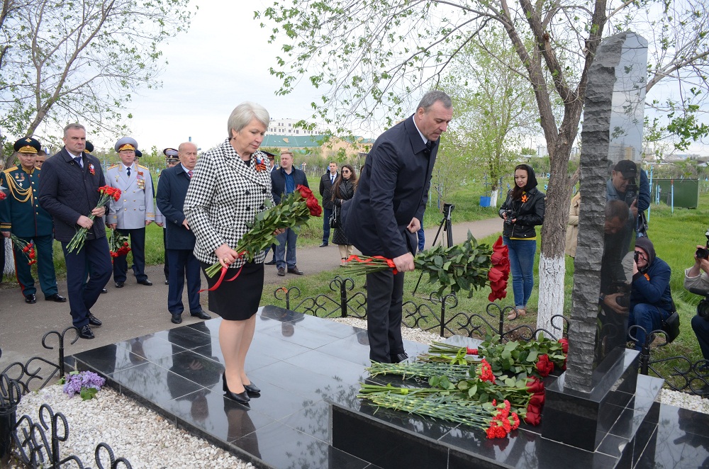 Память павших героев войны присутствующие почтили минутой молчания. Затем участники возложили цветы к мемориалу советским воинам, умершим от ран в госпиталях в годы Великой Отечественной войны.