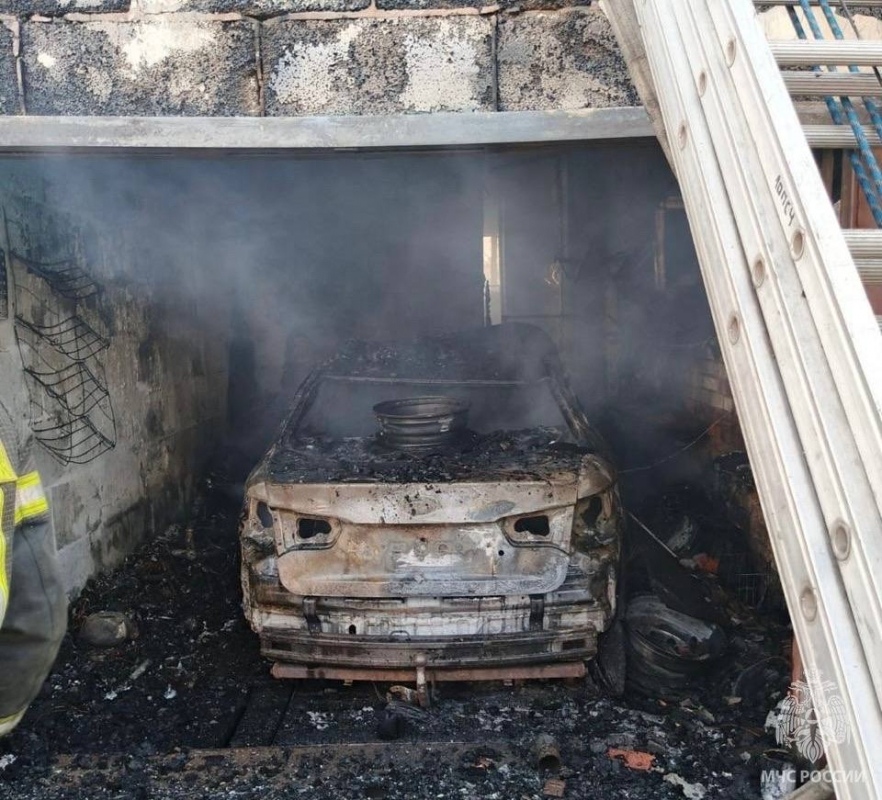 К счастью, во время пожара никто не пострадал, чего нельзя сказать про автомобиль, находящийся в гараже, да и саму постройку. Машину явно восстановлению не подлежит.