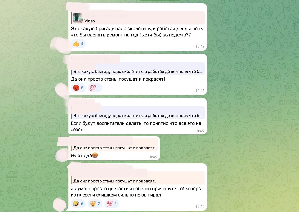 Причина закрытия осталась непонятна некоторым родителям – какое завершение работ, если в августе сад закрывали для устранения проблем, связанных с работой ливневой канализации?! Ранее родители детей жаловались на состояние стен в группах - имелись признаки длительного намокания. Тогда это связали с недостатком работы ливневой канализации и пообещали устранить. Летом детских сад закрывали на непродолжительное время, чтобы просушить помещения и убрать причину возникновения проблем.