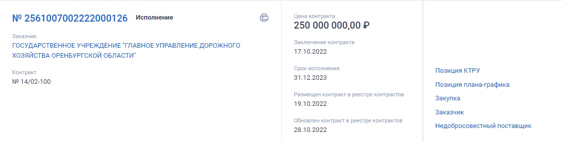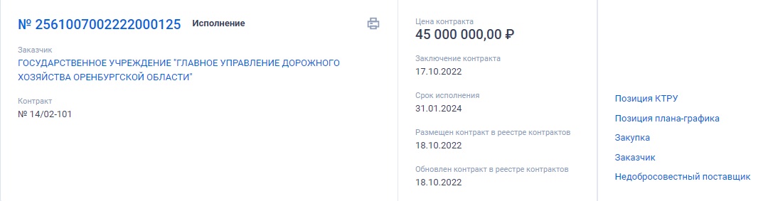 Государственное учреждение «Главное управление дорожного хозяйства Оренбургской области» заключило очередной контракт стоимостью 45 млн рублей на выполнение работ по обеспечению функционирования передвижных фоторадарных комплексов на автомобильных дорогах федерального, регионального, межмуниципального, местного значения и улично-дорожной сети муниципальных образований Оренбургской области. Всего в регионе будет размещено 33 «треноги». Их, как и в предыдущие годы, будет обслуживать ИП Щербина. К онтракт действует до 31 января 2024 года.