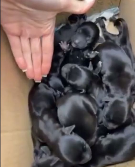 А очередной "подарок" аж из девяти щенков, каждый размером меньше ладошки - всего-то пару дней от роду, был обнаружен в коробке, подброшенной неизвестным на мусорную площадку. Мужчина, не обращая внимания на прохожих, просто подъехал к мусорной площадке на своем авто и оставил коробку с живыми, черными как угольки, малышами у мусорных баков.