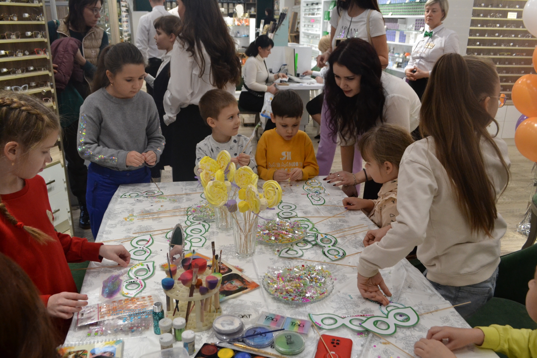 Пока гости слушали лекции (а их провели сразу две, настолько много было желающих) и участвовали в дискуссии, их дети заряжались позитивом прямо в салоне оптики. Для них проводили занимательные экскурсии, угощали чаем и выпечкой, дарили яркие разноцветные шары, делали аквагрим. Всё это вызывало неподдельный восторг на лицах детей. Также для юных оренбуржцев специалисты провели мастер-класс по изготовлению и декорированию очков.