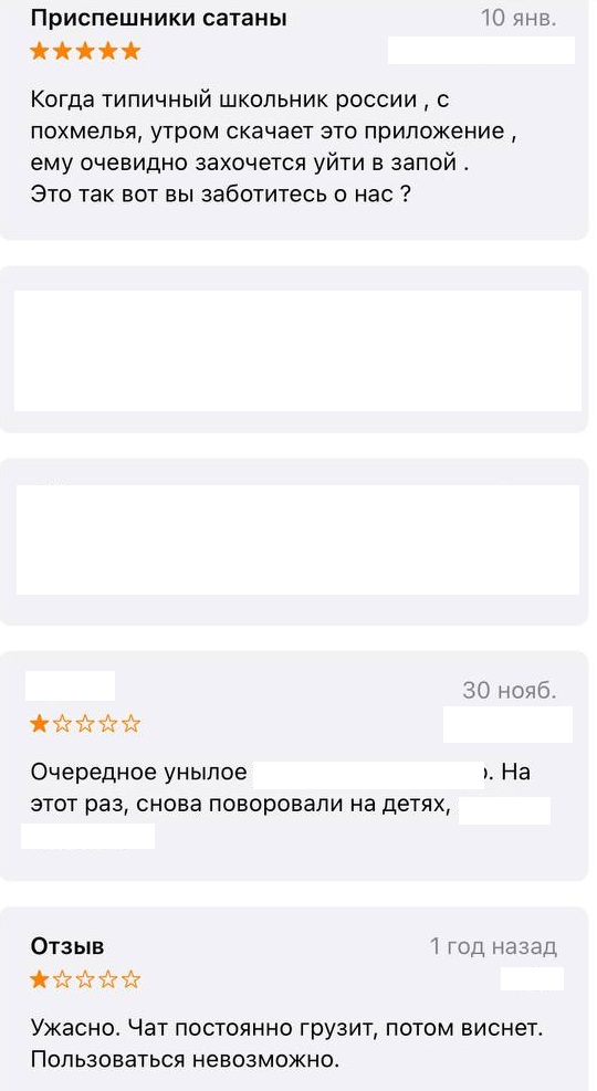 "Приложение работает ужасно, ничего не грузится, постоянные зависания! Учитель не может позвонить ученикам! Ужас".