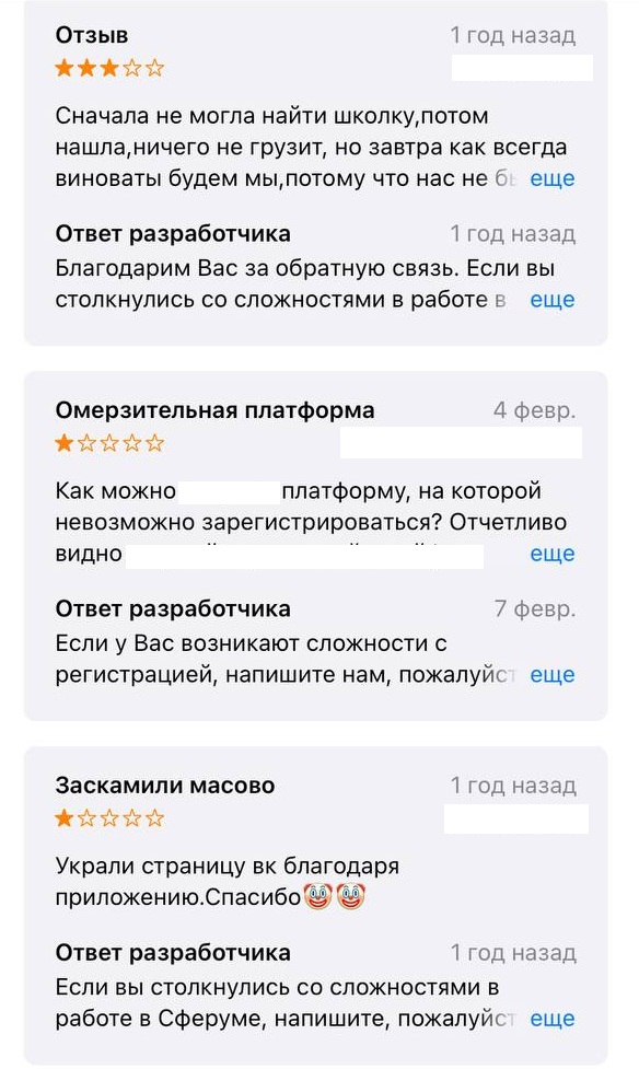 Платформу можно скачать на официальном сайте sferum.ru, как на компьютеры и ноутбуки, так и на телефоны и планшеты при помощи сервисов Google Play и App Store. К слову, что касается Google Play, то в «магазине» совсем недавно исчезли отзывы к программе и оценки.