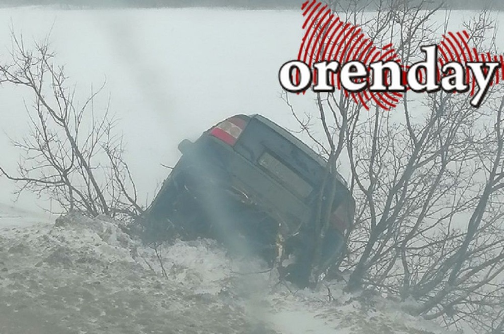 На автодороге Бугуруслан – Заглядино снежное месиво и колеи на отдельных участках не только не позволяют ехать с обычной скоростью, но и угрожают безопасности движения. Съехавший в сугроб легковой автомобиль – один из многих, кто за эти месяцы не смог справиться с управлением автомобилем на сложном участке автодороги.