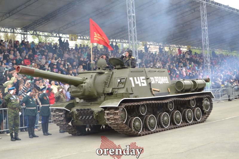 Несмотря на то, что прежде военная техника в параде участвовала лишь по юбилейным датам, на этот раз было сделано исключение, причем число единиц техники было увеличено в полтора раза. Возглавил колонну боевой техники знаменитый танк-победитель Т-34, который шел, не жалея асфальт, на собственном ходу, управлял им ветеран военной операции в Сирии, заместитель военного комиссара Оренбургской области, полковник Андрей Буданов.