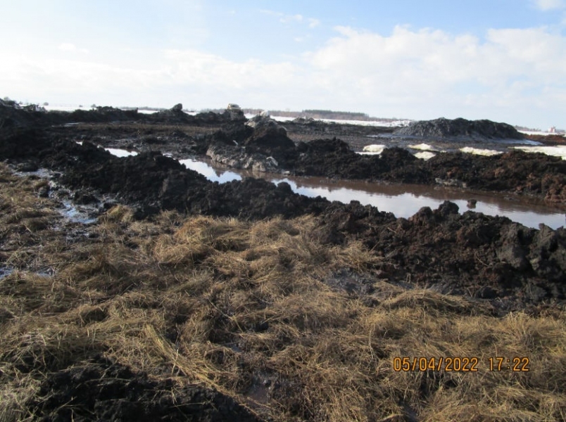 В ходе осмотра установлено, что на земельных участках сельскохозяйственного назначения имеются следы разлива нефтесодержащей жидкости и самовольного снятия и перемещения плодородного слоя почвы, а также его перемешивание с минеральным грунтом, в результате земляных работ по ликвидации и устранению порывов нефтяного трубопровода ГС Савруша-УПСВ Карповская Саврушинского месторождения.