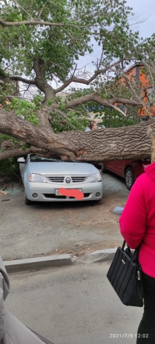 Ветер был такой силы, что карагач вырван из земли практически с корнем. Остальные автомобили, на первый взгляд, не пострадали, разве, что на них останутся следы от веток в виде царапин.